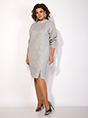 Стильное платье в лаконичном сочетании с отделочной трикотажной тканью. Модель О-образного силуэт, со спущенной линией плеча. Вырез горловины оформлен мягкой стойкой-лодочкой. Рукав полной длины оформлен мягким манжетам. По полочке расположен ассиметричный рельеф, переходящий в застежку с молнией. Спинка без особенностей. Данная модель будет отличным вариантом как для работы в офисе, так и для повседневных образов. Платье идеально смотрится на разных типах фигуры: скроет недостатки, а также удачно подчеркнёт достоинства фигуры и поможет создать Вам уютный неповторимы образ. Длина 104 см. Рукав – 62 см