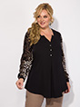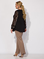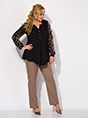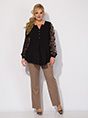 Комплект женский. Стильная, эффектная блузка мягко ложится по силуэту! Модель полуприлегающего силуэта, слегка расклешена к низу. Необычный V-вырез переходит в планку с застежкой на декоративные пуговки! Изюминкой данной модели служит втачной, длинный рукав из декоративной ткани с бархатным эффектом! Спинка без особенностей! Брюки в комплекте классические, с завышенной посадкой и заутюженными кантами. Пояс притачной, в боковых участках пояса вставлена резинка для комфортного прилегания. Застежка – тесьма-молния с обработанным гульфиком. В брюках имеются боковые карманы. Если Вы ищете идеальное сочетание стиля и комфорта, данный комплект отличный вариант для Вас! Длина – 80 см, рукав – 63 см. Брюки – 104 см