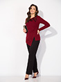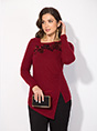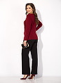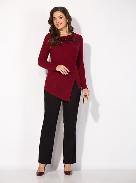 Стильная и оригинальная модель кофты - идеальный вариант для тех, кто любит привлекать внимание, станет отличным дополнением к Вашему гардеробу. Модель с оригинальным вырезом горловины, с декоративной бархатной вышивкой! Полочка с ассиметричным рельефом, переходящим в разрез. По линии талии небольшая сборка, скрывающая все недостатки, подчеркивая лишь Ваши достоинства. Рукав вточной, длинный. Спинка без особенностей. Данная модель отлично сочетается с классическими брюками! Брюки классические, с завышенной посадкой и заутюженными кантами. Пояс притачной, в боковых участках пояса вставлена резинка для комфортного прилегания. Застежка – тесьма-молния с обработанным гульфиком. В брюках имеются боковые карманы. Если Вы ищете идеальное сочетание стиля и комфорта, данный комплект отличный вариант для Вас! Длина по спинке – 66 см, по переду – 80 см, рукав – 61 см