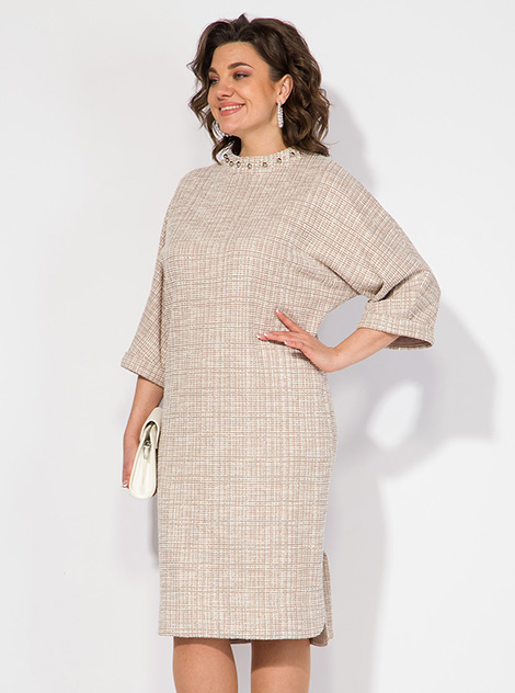 Шикарное платье в стиле «Шанель», лаконичное с ярким акцентом в виде бусин жемчуга по горловине! Модель O-образного силуэта, с цельнокроеным рукавом на притачной манжете с заворотом. В платье присутствуют карманы в боковом шве. Низ фигурной формы с подгибкой. Застежка по горловине спинки на потайную молнию. Этот образ сдержанной красоты и сделает Вас поистине роскошной! Длина – 100 см, рукав – около 50 см