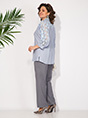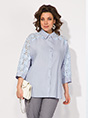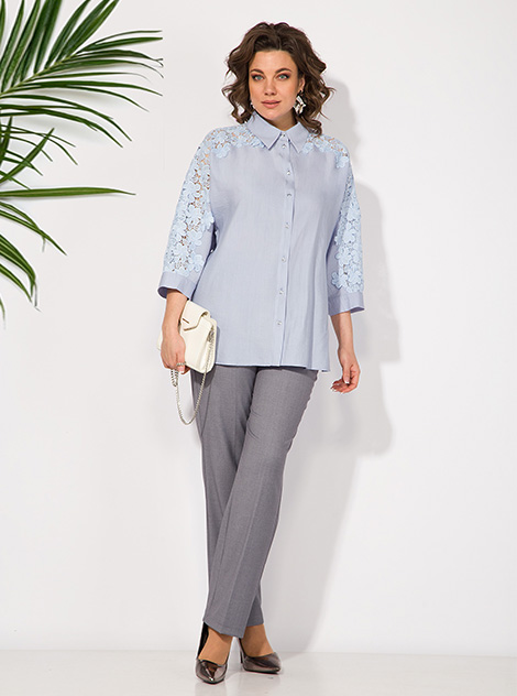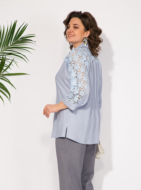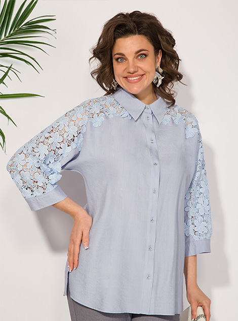 Элегантная блузка - это идеальный выбор для нарядного и офисного стиля. Сочетание хлопкового набивного кружева и классического дизайна придает этой модели особый шик и элегантность. Модель с цельнокроеным рукавом и кружевной кокеткой, переходящей на спинку. Низ рукава оформлен притачным манжетом с застежкой на пуговку. Воротник отложной на стойке. Застежка центральная на петли и пуговицы. По талии расположена кулиска для приталивания по желанию. Низ полуовальной формы. Длина – 75 см, рукав – 47 см
