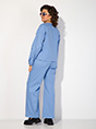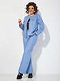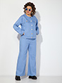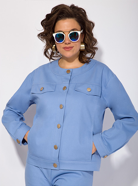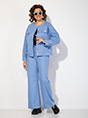 Эффектный комплект в стиле CASUAL, выполнен из хлопкового джинса тифани! Модель состоит из облегченного жакета по типу джинсовки и брюк ! Жакет свободного силуэта, с округлым вырезом горловины. Застежка центральная на петли и пуговицы. Плечевой пояс спущенный, рукав полной длины по низу предусмотрен манжет с застежкой. По полочке расположены продольные рельефы с карманами в шве. В комплект входят брюки по типу джинс, с завышенной посадкой. По переду расположены карманы. Застежка – брючная тесьма-молния с обработанным гульфиком. Брюки прямого кроя. Сзади расположены накладные карманы. Для более комфортного прилегания по спинке в пояс вставлена резинка. Длина жакета – 60 см, рукав – 62 см. Брюки – 104 см