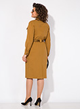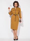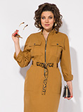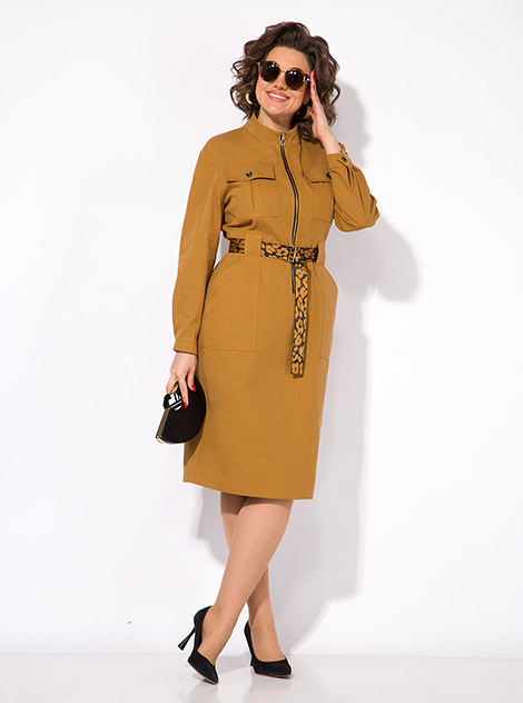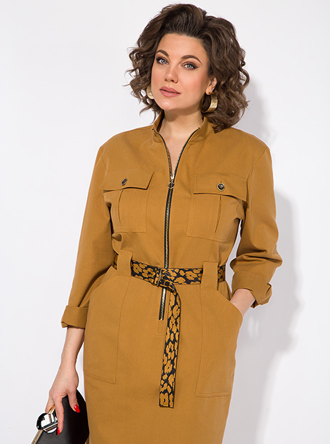 Стильное и эффектное платье, в стиле - сафари! Модель выполнена из хлопкового джинса! Платье полуприталенного силуэта, длиной за колено. По талии отрезное. Воротник - небольшая стойка, переходящая в застежку на металлическую молнию. Рукав рубашечный, полной длины. По низу рукава предусмотрен манжет с застежкой на пуговку. По полочке расположены накладные карманы с клапаном. В платье также предусмотрены накладные карманы. По спинке кокетка с центральным швом переходящий в разрез на свободу движения. В платье предусмотрен съёмный пояс с металлической пряжкой! Длина – 110 см, рукав – 62 см