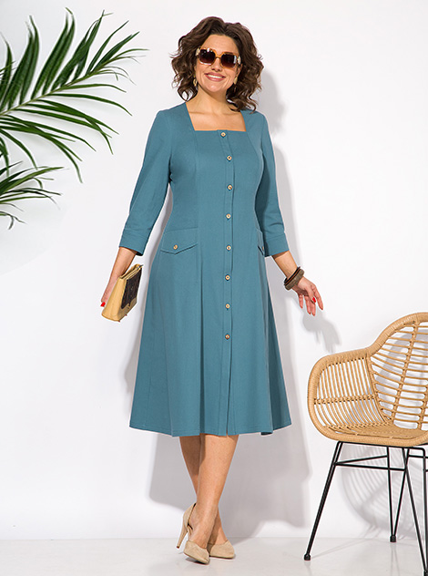 Эффектное платье из хлопка – базовая вещь вашего гардероба, которая подойдет для любого случая! Модель в стиле сафари, полуприталенного силуэта – воплощение элегантности и стиля. Квадратный вырез горловины – подчеркнет вашу женственность и утонченность. Продольные рельефы с двойной отсрочкой переходят в карманы с клапаном по переду. Застежка центральная на планке на декоративные петли и пуговицы. Рукав втачной, длиной ¾-ти, по низу предусмотрен манжет с застежкой на 2 пуговки. Спинка с продольными рельефами и центральным швом! Это свободная одежда на весну является превосходным выбором для современных женщин, которые ценят удобство и красоту. Позвольте себе почувствовать себя уверенно и привлекательно в этом удивительном наряде! Длина – 115 см. Рукав – 50 см