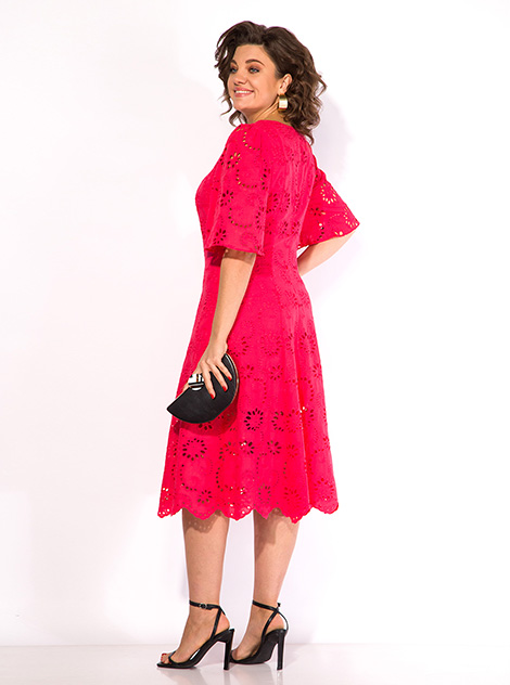 Летнее платье - это неизменный атрибут сезона отпусков, а также жарких городских будней и романтических вечеров. Надев это нарядное платье длиной миди, каждая дама непременно окажется в центре внимания! Модель полуприлегающего силуэта, с продольными рельефами по полочке и спинке. Вырез декольте квадратной формы. Рукав вточной, чуть присборен по окату, свободный, длиной до локтя! Спинка без особенностей. Застежка – потайная тесьма-молния по центральному шву спинки! Длина по спинке – 115 см, рукав- 40 см
