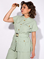 Откройте для себя идеальное сочетание стиля и комфорта с этим нарядным летним комплектом в стиле «сафари». Удлиненные шорты-бермуды с широкой круговой резинкой по талии идеально подчеркивают беззаботный летний образ, а встроенные боковые карманы добавляют функциональности. Легкая свободная рубашка с накладными карманами и спущенной линией плеча, добавляет легкость и дает дополнительную свободу движений в жаркий сезон. Застежка центральная, на притачной планке с пуговицами. По бокам предусмотрены разрезы. Полочка и спинка с декоративной кокеткой и складкой на свободу движения. Линию талии акцентирует съемный пояс из основной ткани с пряжкой. Независимо от того, прогуливаетесь ли вы по праздничной вечеринке или отправляетесь на вечернее мероприятие, этот костюм подчеркнет вашу легкость, элегантность и стиль. Длина рубашки – 75 см, шорты-бермуды – 65 см