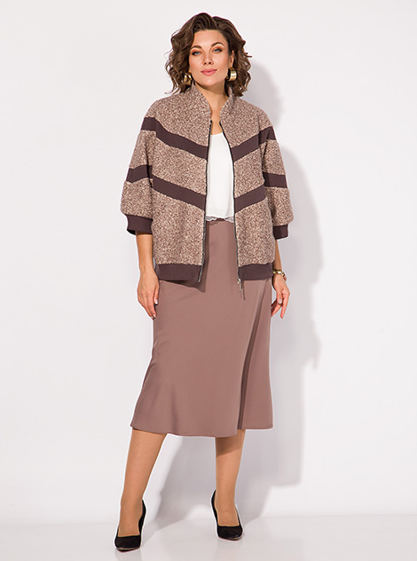 Элегантный утепленный жакет свободного силуэта «oversize» находка на предстоящую осень. Создавая комфорт, тепло и уют, он выполнен из трикотажа с эффектом букле высокого качества. Модель о-образного силуэта, с цельнокроеным рукавом длиной ¾-ти. Воротник оформлен мягкой закругленной стойкой из основной ткани. Застежка центральная на металлическую молнию. Низ изделия и рукава оформлен мягкими манжетами из кашкорсе. В модели предусмотрена шелковая подкладка, а также прорезные карманы для удобства. Такой жакет отлично сочетается с юбками и брюками из базовой коллекции от бренда LILIANA. Нарядный, но в то же время удобный вариант будет выделяться своим оригинальным дизайном среди других вещей вашего гардероба. Длина по спинке – 65 см, рукав спущенный (от плеча до низа)- 45 см