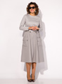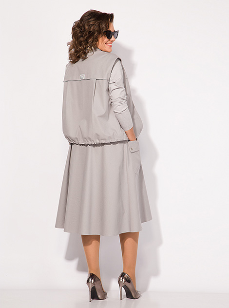 Комплект женский, 2-ух предметный, состоящий из платья и модного жилета в стиле СASUAL. Комбинированное платье, полуприталенного силуэта, выполнено из сочетания мягкого трикотажа и хлопкового джинса. Платье с вточным рукавом полной длины и округлой мягкой горловиной. По талии предусмотрена кулиска с утяжкой. Платье с разклёшенной юбкой и накладными карманами. В комплект входит жилетка свободного силуэта, центральной бортовой застежкой на петли и пуговицы с воротником стойкой. Модель с декоративными кокетками по полочке и спинке. По переду расположены карманы в рельефных швах. Низ изделия присборивается на кулису с регуляторами. Жилетка на шелковой подкладке. Длина жилетки – 65 см, платье – 115 см, рукав – 63 см