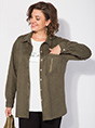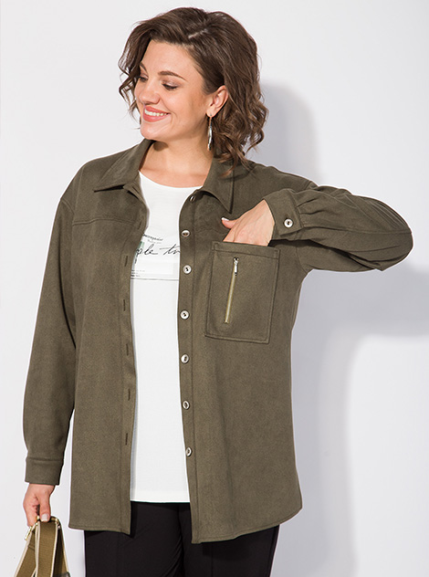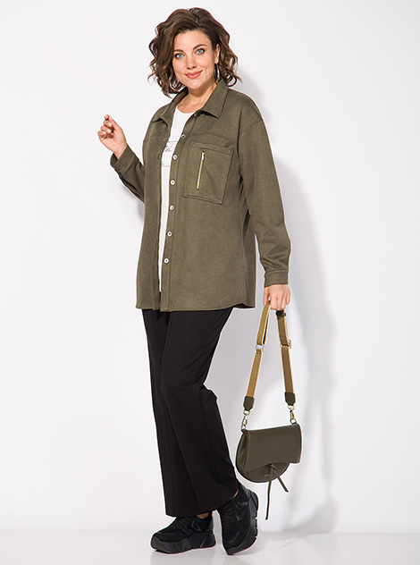 Комплект женский, состоит из рубашки и футболки. Эта удлиненная замшевая рубашка от бренда ЛИЛИАНА — must-have для стильных образов в духе Pinterest. Модель свободного силуэта с отложным воротником на стойке. Застежка центральная на петли и пуговицы. Рукав на рубашечной пройме, длинный, низ оформлен манжетам. Полочка с ассиметричным накладным карманом с декором в виде молнии. Спинка на кокетке с заложенными складками на свободу движения. По бокам имеются карманы. В комплекте футболка на спущенном цельнокроеном рукаве с округлым вырезом горловины. Лиф украшает печать накат в тон изделия. Длина рубашки – 75 см, рукав – 62 см. Футболка – 68 см