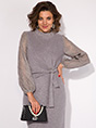 Эта модель платья из мягкого, уютного трикотажа подходит как для повседневного использования, так и для торжественных мероприятий. Прочная и эластичная ткань делает его незаменимым элементом вашего гардероба. Облегающий силуэт с эффектным подрезом по линии талии, переходящий в пояс с металлической пряжкой акцентирует фигуру и создает стильный, утончённый вид. Мягкая полулежащая стойка у горловины украшена пробивными бусинами из жемчуга. Спинка с центральным швом и обработанной шлицей по низу изделия. Застежка – потайная тесьма-молния по спинке. Эффектный ажурный рукав из сетки с вышивкой крючком дополняют и без того элегантный образ. Длина по спинке – 112 см., рукав – 62 см