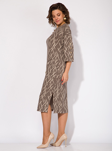 Трикотажное женское платье с накладными карманами — идеальный выбор для тех, кто ценит стиль Old money и комфорт в повседневной жизни. Модель полуприталенного силуэта со спущенной линией плеча. Рукав длиной 3/4-ти с имитацией шлицы украшает ряд декоративных пуговиц. Вырез горловины округлый, на мягкой планке. Длина изделия слегка за колено, по бокам предусмотрены разрезы на свободу движения. Стильный и элегантный образ! Это трикотажное платье станет настоящей находкой для модниц, стремящихся подчеркнуть свою индивидуальность. Его универсальный фасон позволяет создавать разнообразные образы, подходящие для разных сезонов. Выбор этого платья — это инвестиция в стиль и комфорт, которые будут радовать вас каждый день. Длина по спинке – 115 см, рукав – 45 см