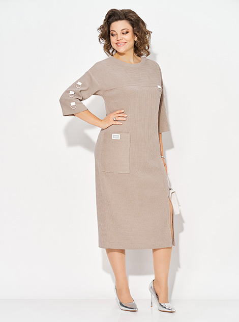 Эффектное платье выполнено из трикотажного штрукса, создано для тех, кто ценит комфорт в повседневной жизни. Модель полуприталенного силуэта со спущенной линией плеча. Рукав длиной3/4-ти украшает ряд декоративных полуколец. Вырез горловины округлый, на мягкой планке. Полочка с отрезной кокеткой и ассиметричным рельефом, переходящим в разрез на свободу движения. Ассиметричный накладной карман украшает декоративная нашивка. Это трикотажное платье станет настоящей находкой для модниц, стремящихся подчеркнуть свою индивидуальность. Его универсальный фасон позволяет создавать разнообразные образы, подходящие для разных сезонов. Выбор этого платья — это инвестиция в стиль и комфорт, которые будут радовать вас каждый день. Длина по спинке – 115 см, рукав – 45 см