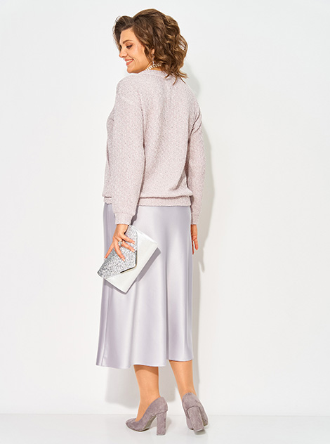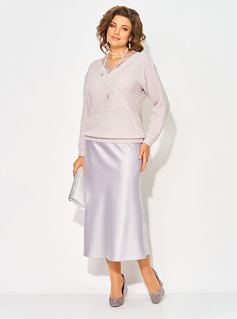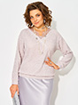 Вязанный жемчужно-лиловый джемпер с ажуром по вороту - это идеальный вариант для создания стильного и привлекательного романтического образа! Мягкий и нежный материал этого джемпера делает его очень приятным на ощупь, теплым и уютным, а легкое мерцание придает свою изюминку. Горловина v-образной формы приковывает взгляды к линии декольте. Рукав длинный, на спущенной линии плеча. Низ рукава, а также низ изделия оформлен мягкой трикотажной манжетой. Особенно актуальна данная кофточка на осенний и зимний период, за счет качественного состава, не пропускает холод обеспечивает тепло и комфорт! Длина по спинке – 65 см, рукав – 62 см